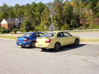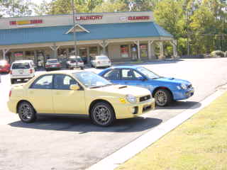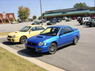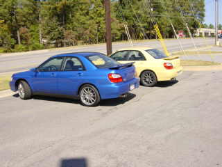 Here are some pictures of my Yellow Rex as well as pictures of Joel's blue WRX. He has OZ SLs with 245/35-18 Toyo T1s installed. His car is very nice and has the complete STI suspension upgrade as well as camber plates, rear strut bar, sway bars, etc.